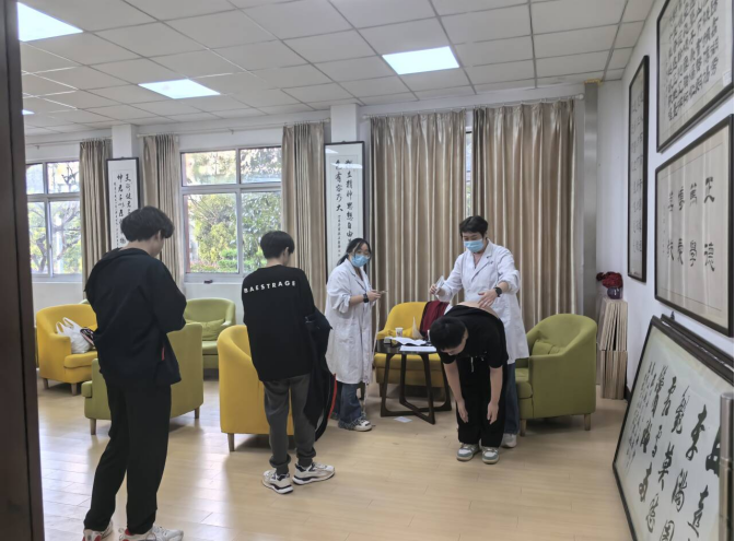 为了向学生、学校和家庭普及健康知识,引导青少年、养成健康行为方式,建立并完善防治工作体系和长效机制,全面提高青少年身心健康水平,2024年10月23日下午,滨湖区疾控中心、无锡市第二中医医院在职工之家对我校240多名学生健康情况进行远视力检查、屈光检测、血压测量、口腔检查、脊柱检查、肺活量、身高体重腰围测量以及健康影响因素问卷调查工作。