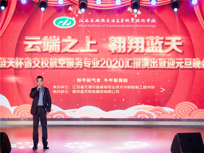 为展示学校航空服务专业学生良好的专业素养和精神风貌,12月9日,学校在大礼堂举办了“蓝天杯”航空服务专业2020汇报演出暨迎元旦晚会。学校党委书记、校长李虎,泰州职业技术学院党委副书记钟文乐,南京蓝天教育集团董事长朱正华出席活动。本次汇报演出由华体会网页版页面登录船舶工程学院承办,南京蓝天教育集团有限公司协办。学校各处室、院部的领导,教师代表、学生代表以及航空服务专业的家长代表700余人参加了本次活动。活动还特别邀请了泰州职业技术学院以及南京蓝天教育集团的领导和嘉宾。