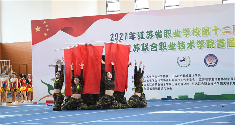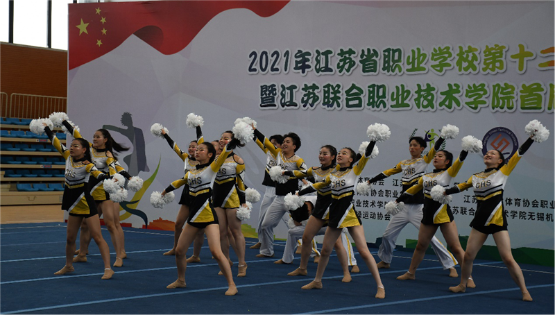 2021年江苏省职业学校第十二届啦啦操比赛暨江苏联合职业技术学院首届啦啦操比赛于6月11-12日在江苏省无锡市成功举办。本次比赛由江苏省学生体育协会和江苏联合职业技术学院共同主办,江苏联合职业技术学院无锡交通分院和无锡机电分院协力承办,比赛得到了江苏省啦啦操运动协会的鼎力支持,省内共42所职业学校43个代表队共880余名运动员参与2个组别、6个单项的角逐。