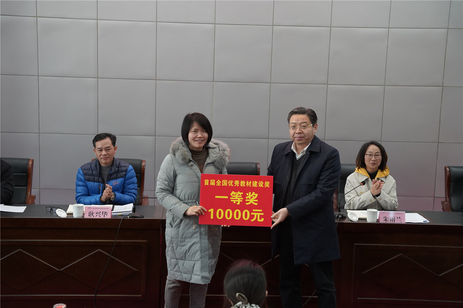 会上,李虎书记为学校获评首届全国优秀教材一等奖的获得者吴志亚教授颁发了首届全国优秀教材突破奖,鼓励全校教师勇于创新创优,争取收获更多成绩突破。