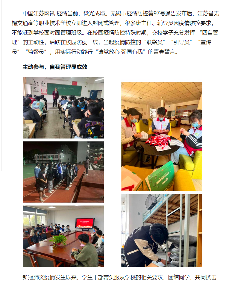 中国江苏网:华体会网页版页面登录“四自管理”促成效 “疫”路畅通保平安