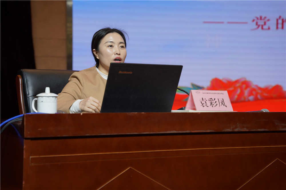 袁彩凤代表介绍了党的二十大盛况、党的二十大报告主要精神,重点围绕党的二十大报告产生过程、报告的主题、主线和重点任务等方面做了系统阐释,同时分享了自己参加党的二十大盛会的经历和感悟,内容生动丰富、语言通俗易懂,使全体教职工对党的二十大精神有了更加全面、更加深入的认识和把握。