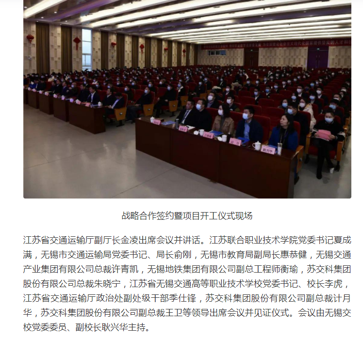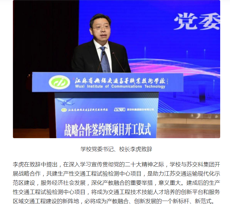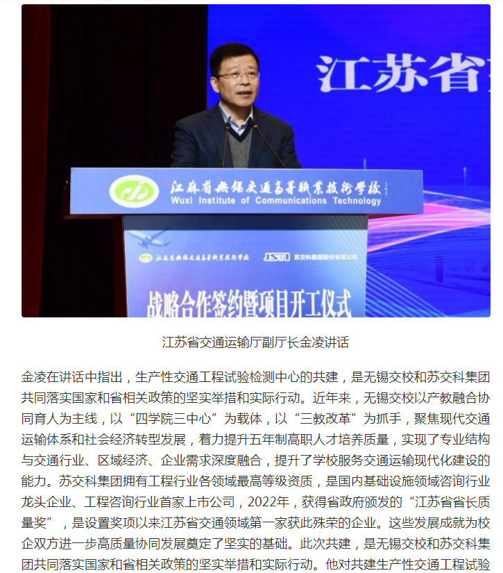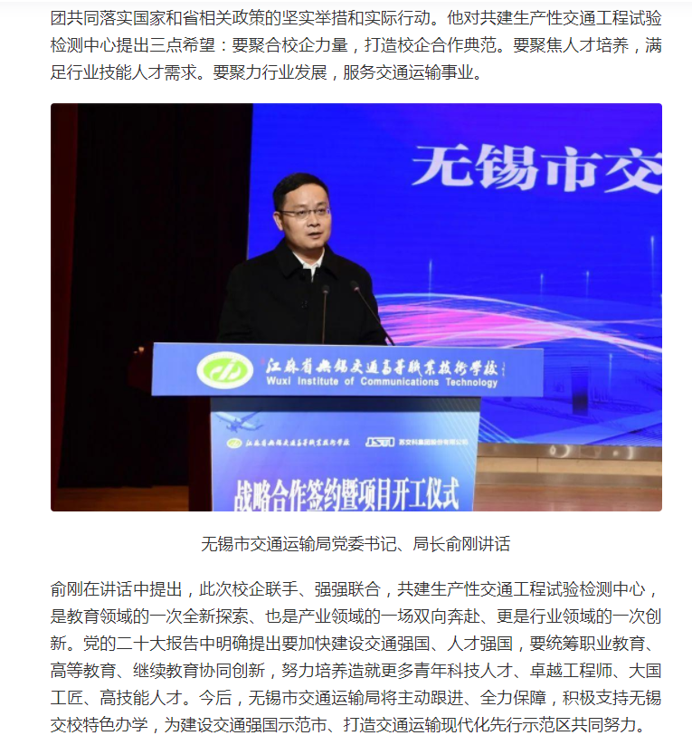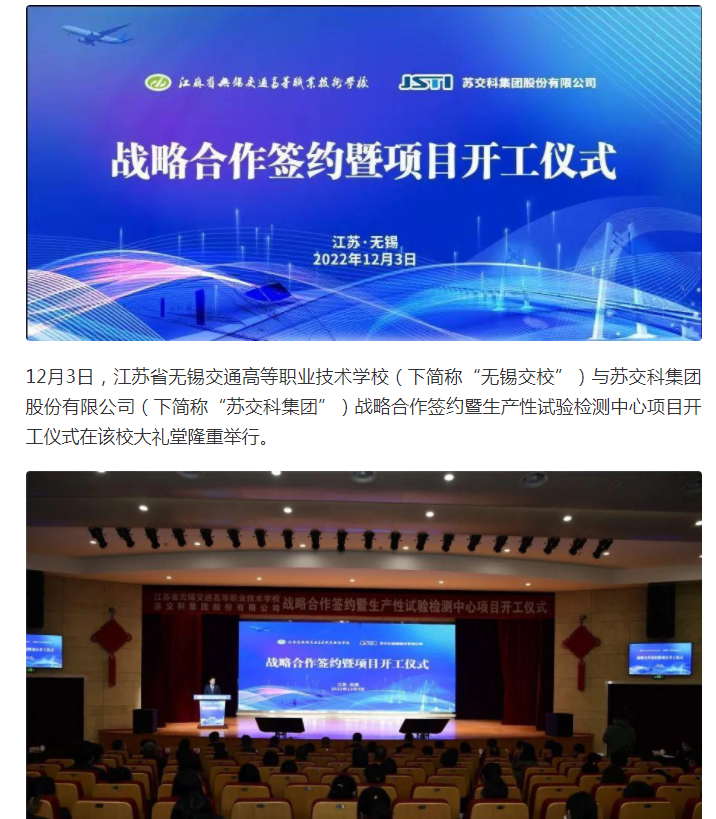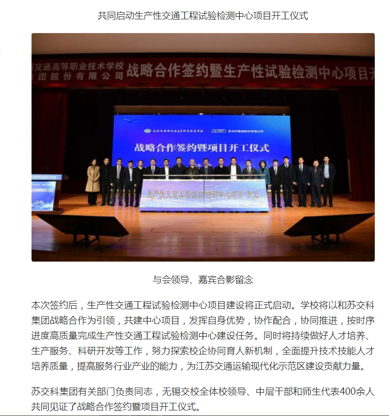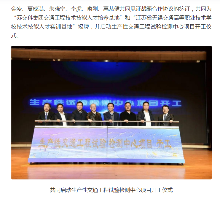 今日头条:无锡交校与苏交科集团举行战略合作签约暨生产性试验检测中心项目开工仪式