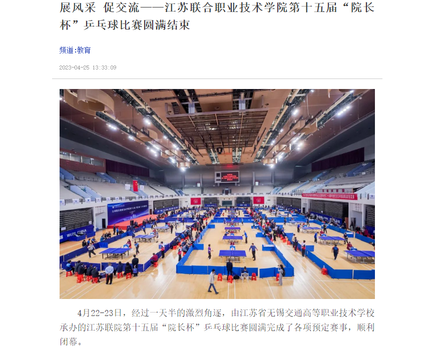 今日头条:江苏联合职院在无锡举办第15届“乒赛”,无锡交通高职校承办