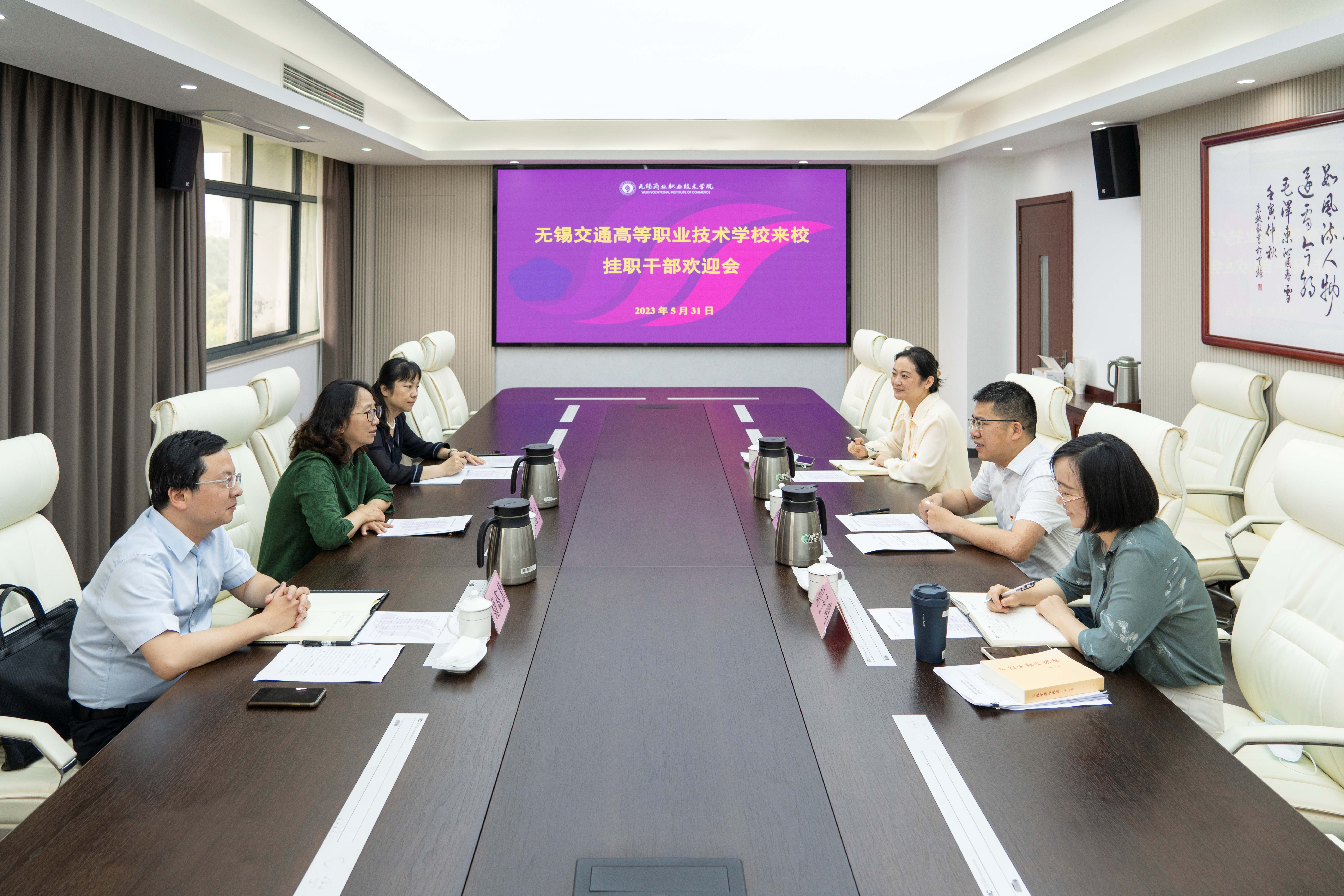 近日,学校认真落实年轻干部跟班锻炼工作,主动与高职院校对接联系,由校领导带队将五名年轻干部分别送至南京交通职业技术学院教务处(质量管理办公室)、江苏航运职业技术学院教务处(高水平高职院建设办公室)、无锡职业技术学院财务处、无锡商业职业技术学院团委和江苏信息职业技术学院智能工程学院进行跟班锻炼,此项工作得到接收单位的大力支持。