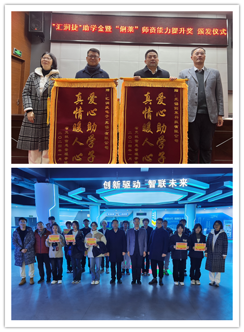 善举创造和谐,爱心传承美德。1月3日下午,信息管理学院在学校学术报告厅举行了“汇润捷”助学金暨“俐莱”师资能力提升奖颁发仪式。无锡俐莱科技有限公司陈忠胜先生、汇润捷电子无锡有限公司刘德刚先生应邀参加,院长郑智飞,副院长蒋红梅及教师代表、学院物联网专业学生代表参加,仪式由副院长蒋红梅主持。