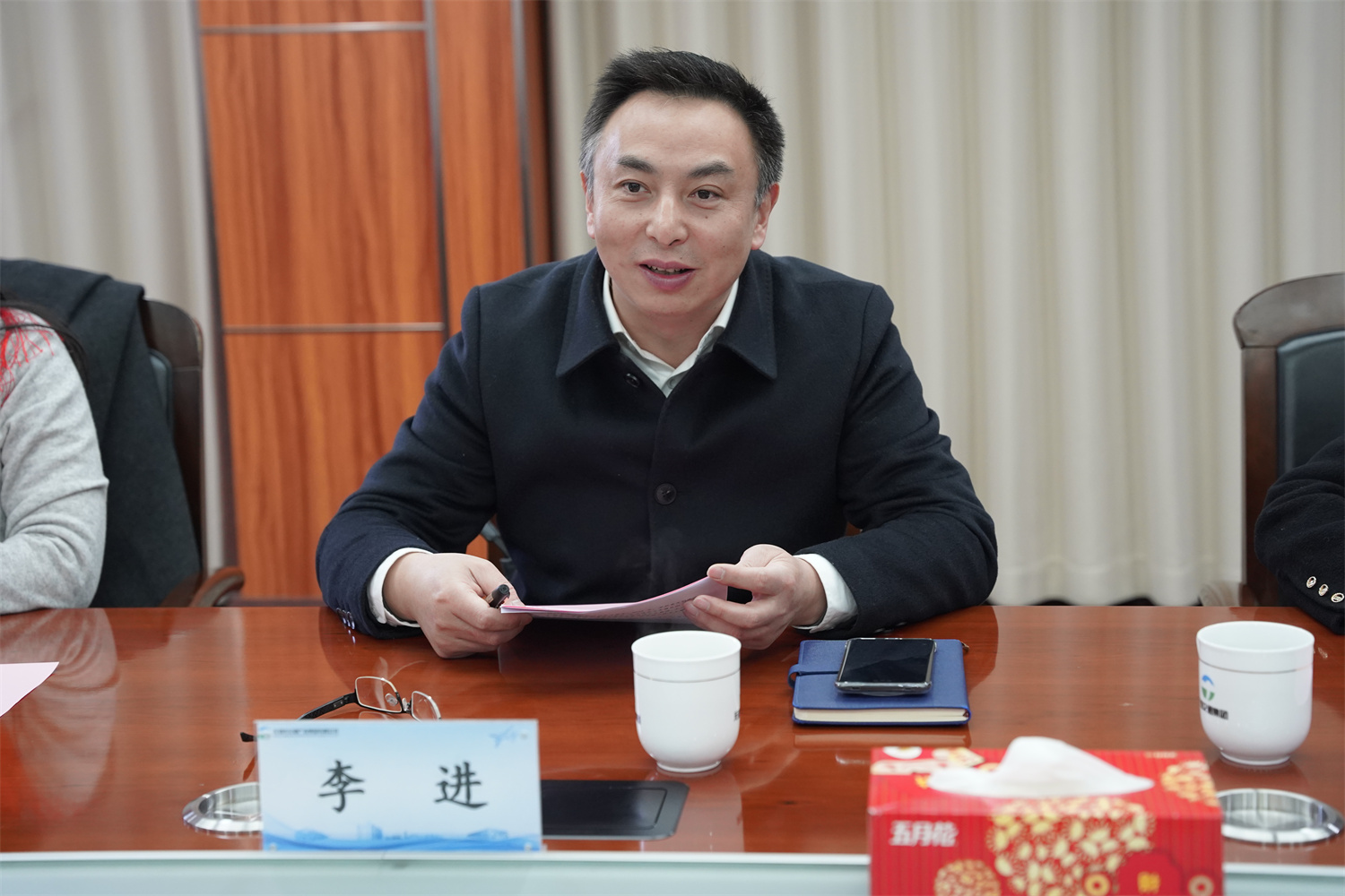 李进对无锡交通产业集团的创新发展给予高度赞赏,同时对集团长期以来对学校的关心和支持表示感谢。他简要介绍了学校在人才培养、专业设置、产教融合以及办学特色等方面的基本情况。他希望通过共建校企合作实践实习基地、产业学院等方式,全面提升人才培养的质量和水平,他结合现代综合交通发展规划和交通产业发展趋势,就学校与交通产业集团在产学研方面的深度合作提出设想。