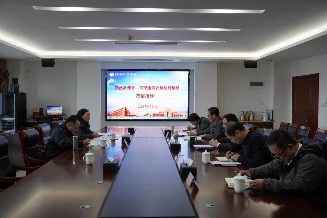 3月11日,江苏省交通运输综合行政执法监督局副局长张凯一行7人来我校交流。学校校长、党委书记李进出席会议并讲话。