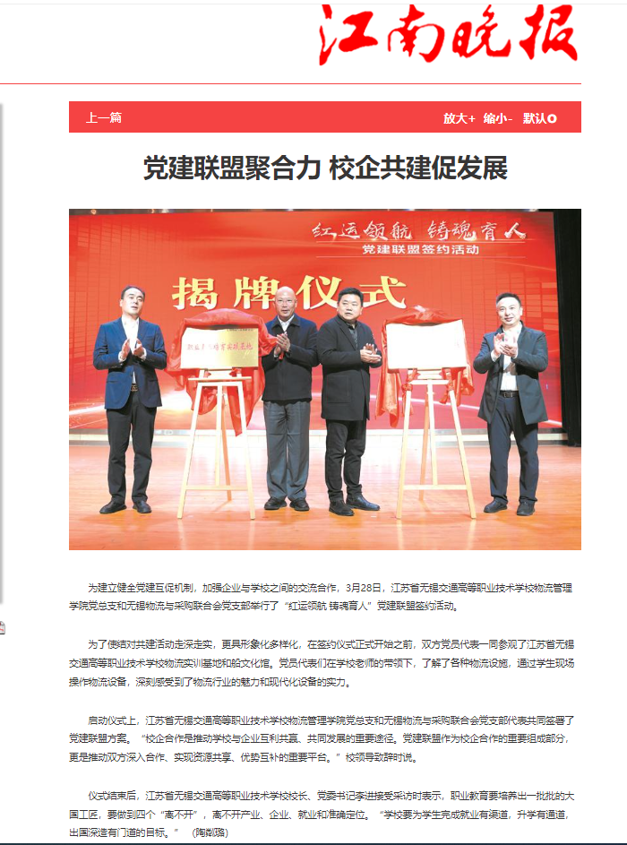 江南晚报:党建联盟聚合力 校企共建促发展