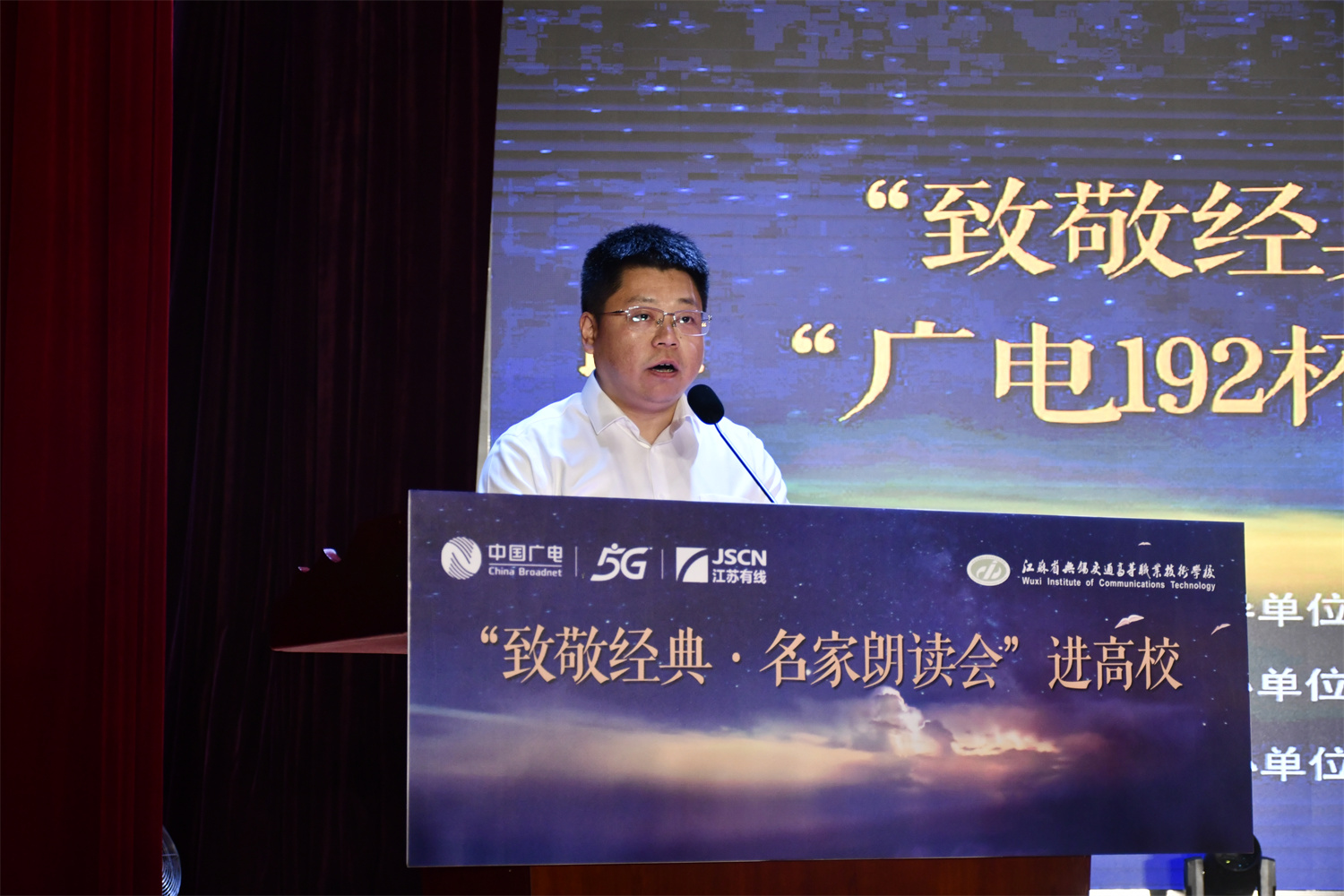 朗读会伊始,学校党委委员、副校长王珏致欢迎辞,他希望通过此次活动,促进校园文化繁荣发展,学校将进一步落实立德树人根本任务,让丰富的校园文化哺育交校学子。江苏有线无锡分公司赵晓光副总经理在讲话中强调了经典文化与新媒体融合的重要性,并表示江苏有线将一如既往地支持文化事业的发展,为公众提供更多优质的文化产品和服务。
