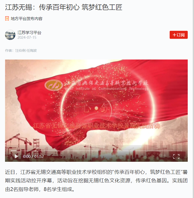 学习强国:江苏无锡:传承百年初心 筑梦红色工匠