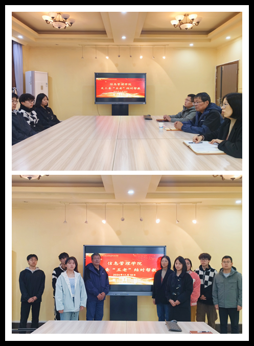 11月18日,信息管理学院关工委于学院会议室举行“五老”结对帮教仪式,离退休教师代表马耀良、学院党总支副书记蒋红梅,9名受助学生参加了帮教仪式,仪式由朱沛老师主持。