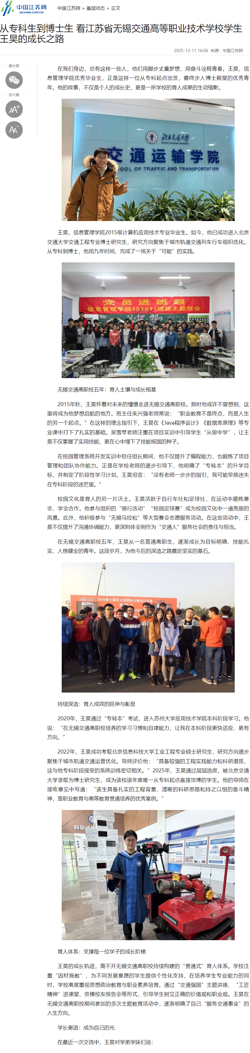 中江网:从专科生到博士生 看华体会网页版页面登录学生王昊的成长之路