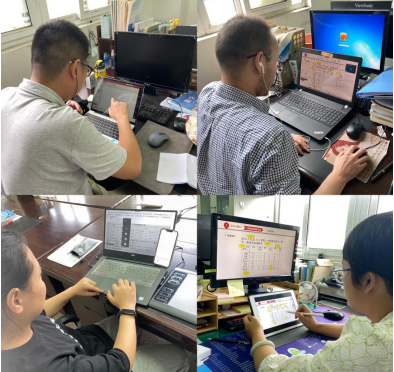 为保障线上教学效果,数学教研室副主任马坚组织数学组老师集体备课,结合学校相关制度,确保在部分学生不在校的情况下,能够顺利开展在线授课、资源学习和线上辅导、讨论、答疑等活动,努力提升学生在家学习的质量。