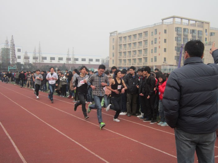 2013年12月25日下午,交通工程系在校操场举办了以“阳光体育与健身同行”为主题的第三届冬季长跑运动会。我校党委书记王金毫老师、副校长耿兴华老师及交通工程系党支部书记毛兰霞老师、副主任邹定南老师到场观摩指导了本次运动会。学校基础部体育教研室钱建平、郭秋萍老师、钱子君老师、朱兴强老师、盛明玉老师及校纪委办公室陈燕春老师、医务人员庄严主任参与本次运动会的裁判及其他组织工作。