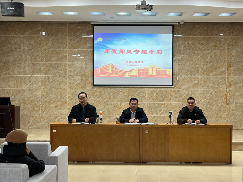 为进一步加强教师队伍建设,提升师德师风水平,2025年2月17日,机械工程学院组织全体教职工开展了新学期师德师风专题学习活动。本次活动以“立德树人,争做‘四有’好老师”为主题,旨在强化教师职业道德素养,营造风清气正的教育环境。活动由学院党总支书记徐小国主持。