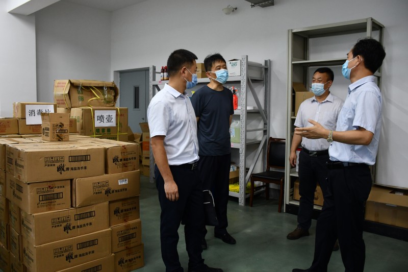 孔组长一行在学校副校长耿兴华的陪同下,实地查看了学校疫情防控工作,现场调研了学校疫情防控物资仓库,翻阅了《华体会网页版页面登录新型冠状病毒感染的肺炎疫情防控工作方案》《学校疫情防控期间校园通风消毒及卫生工作实施方案的通知》等文件和制度。