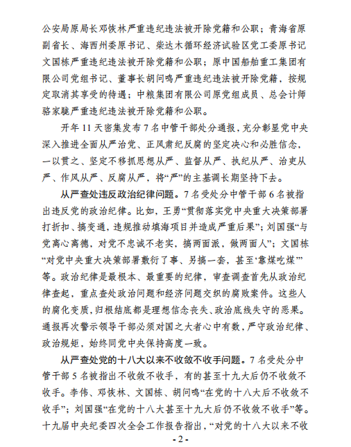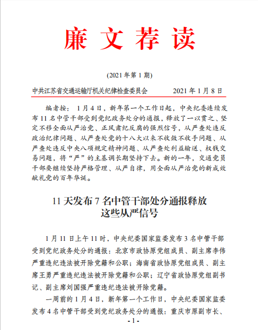 廉文荐读2021年第1期——11天发布7名中管干部处分通报 释放这些从严信号