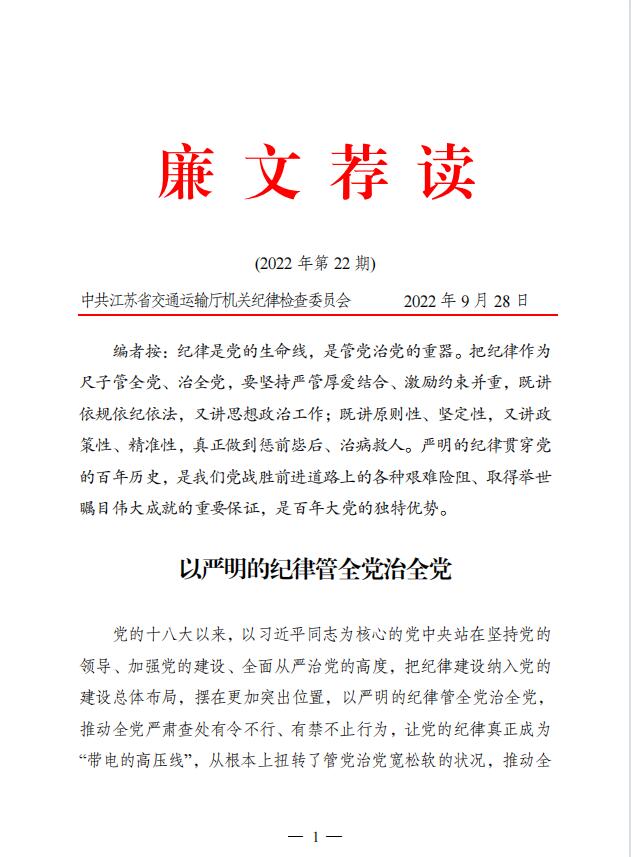 2022年廉文荐读第22期——以严明的纪律管全党治全党