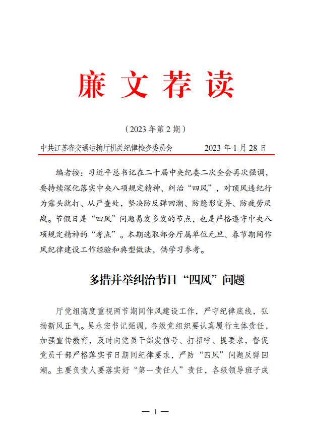 2023年廉文荐读第2期——多措并举纠治节日“四风”问题