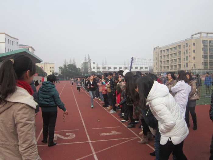 2013年12月25日下午,交通工程系在校操场举办了以“阳光体育与健身同行”为主题的第三届冬季长跑运动会。我校党委书记王金毫老师、副校长耿兴华老师及交通工程系党支部书记毛兰霞老师、副主任邹定南老师到场观摩指导了本次运动会。学校基础部体育教研室钱建平、郭秋萍老师、钱子君老师、朱兴强老师、盛明玉老师及校纪委办公室陈燕春老师、医务人员庄严主任参与本次运动会的裁判及其他组织工作。