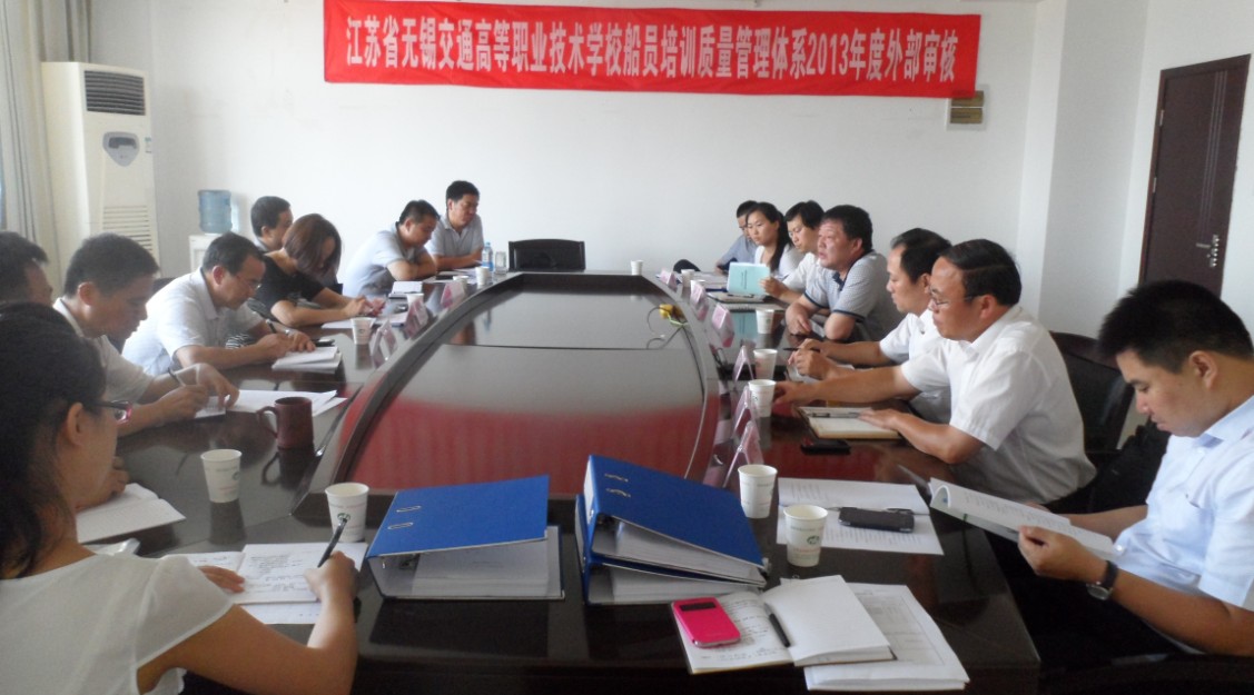 2013年8月13至14日,学校船员培训质量管理体系2013年度外部审核及船员培训机构中期核查会议顺利召开。质量管理体系外部审核由淮安市地方海事局副局长包国兴任组长,盐城市地方海事局船务科科长陈文昌,扬州市地方海事局船务科科长康万健一起对我校船员培训质量管理体系进行了文件及现场初次审核。船员培训机构中期核查工作由江苏省地方海事局助理调研员王樟木任组长,省海事局船务科沈健副主任及刘秀智一起对我校船员培训机构师资、设施、设备等进行了资质核验。