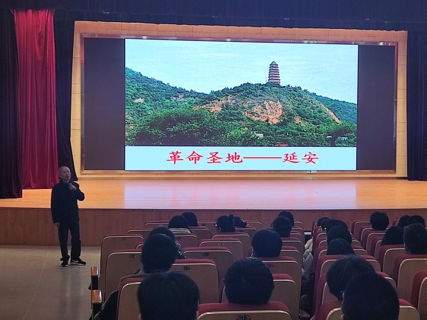 宣讲活动以传承延安精神,争做“三有”新人为主题,精神矍铄的蒋老师用一曲满怀豪情的革命红歌《枣园》作为开场白,把全体学生带到了那个中国革命胜利的转折点——延安,用一个个动人的故事告诉我们延安精神的真正的内涵:自力更生,艰苦奋斗的创业精神;坚定正确的政治方向;实事求是的思想路线;全心全意为人民服务的根本宗旨。