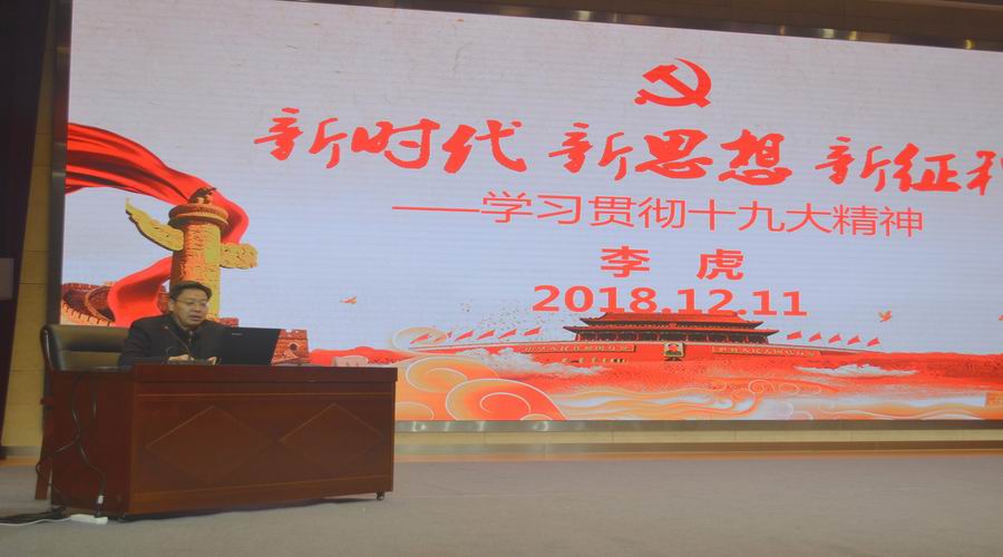 12月11日下午,2018年学校业余党校培训班开班典礼在学校礼堂开幕。此次开班典礼由校党委副书记、纪委书记朱雨兰主持,学校党委书记李虎同志以《新时代新思想新征程学习贯彻党的十九大精神》为主题讲授开班第一讲