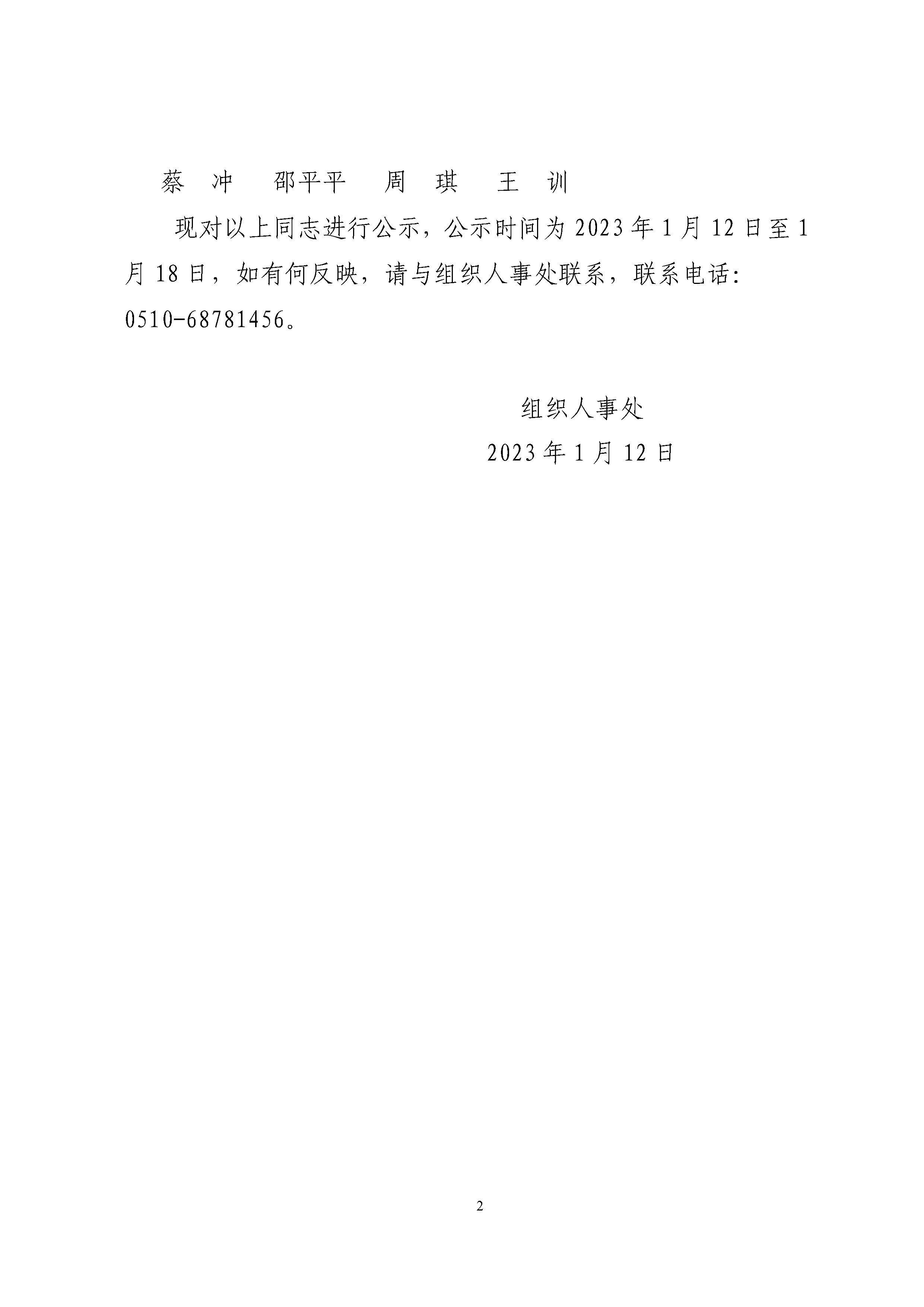 2022年度考核优秀等次人员名单公示