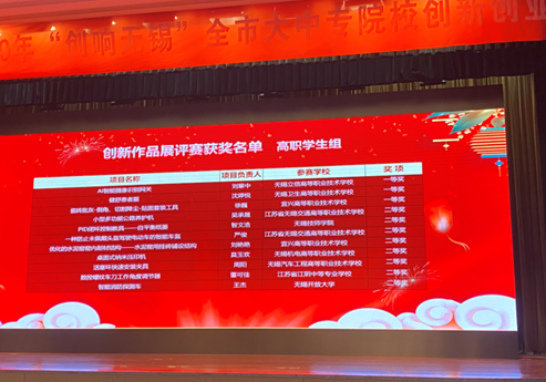 2020年“创响无锡”全市大中专院校创新创业大赛由市教育局、市人社局、市科技局和团市委共同主办。通过以赛促教、以赛促学方式,增强了我院学生创业意识和创新能力,促进学校加快了培养具有创新精神的高素质技术技能人才的步伐。