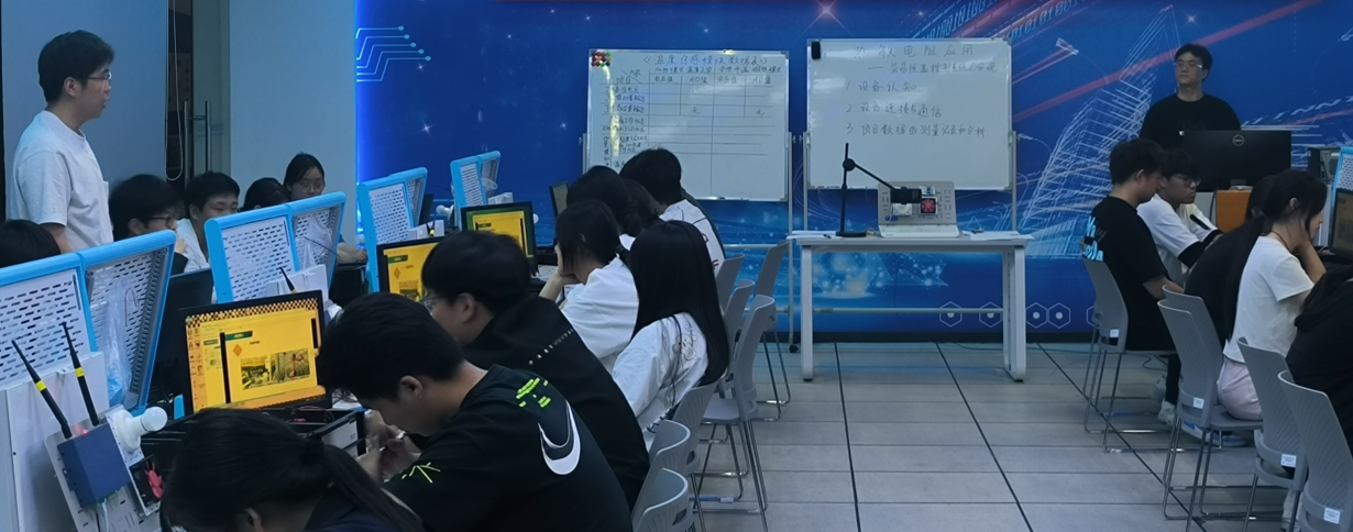 5 月 21 日,信息管理学院青年教师杨腾在励志楼一楼物联网关键技术基础实训室开展了一场主题为 “热敏电阻应用 — 简易恒温控制系统的实现” 的校级公开课,各学院教师、学院领导、教研室主任及专业教师参与了此次听课活动。